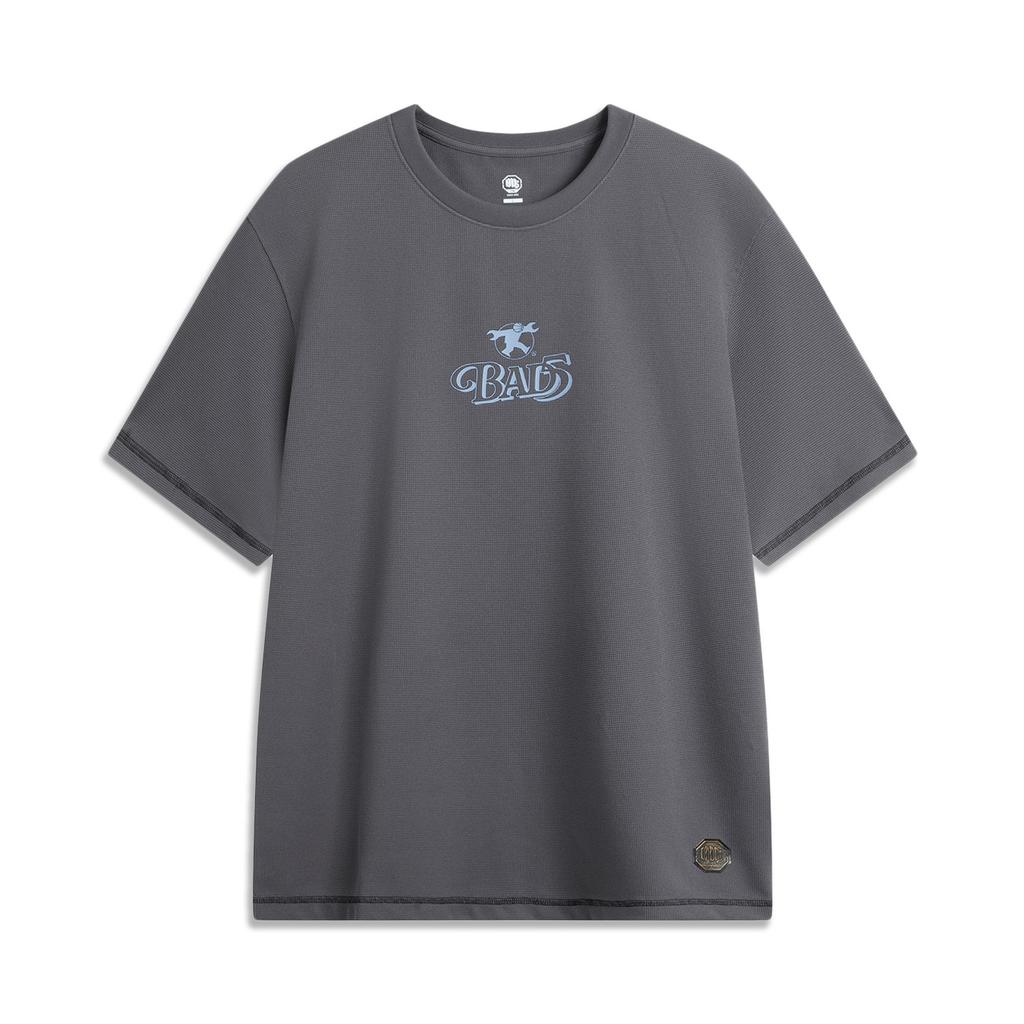 Li-Ning Comfortable Simple Versatile Loose Letter Print Short Sleeve T-Shirt Men Tops Black Pine-Grey AHSVB79-2