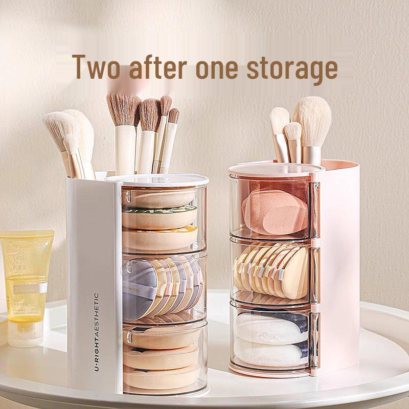 Rotating Dustproof Makeup Organizer: Storage Box for Puff, Lipstick, Brush, and Egg Cushion