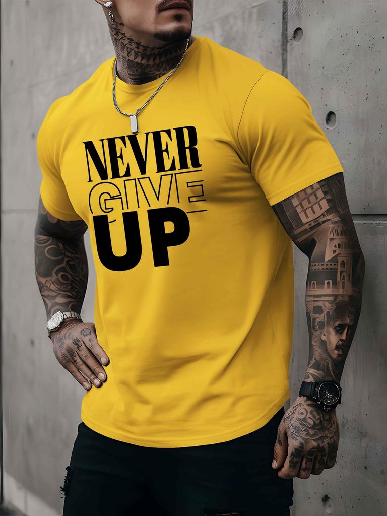 A Men's T-shirt Never Give Up Summer Comfortable Quality Men's Top Bottoming Shirt Soft Breathable Fabric