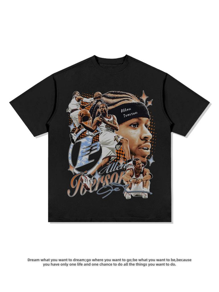 Allen Iverson Short Sleeve Allen Iverson American T-Shirt Summer Vintage Men's and Women's Short Sleeve Streetwear