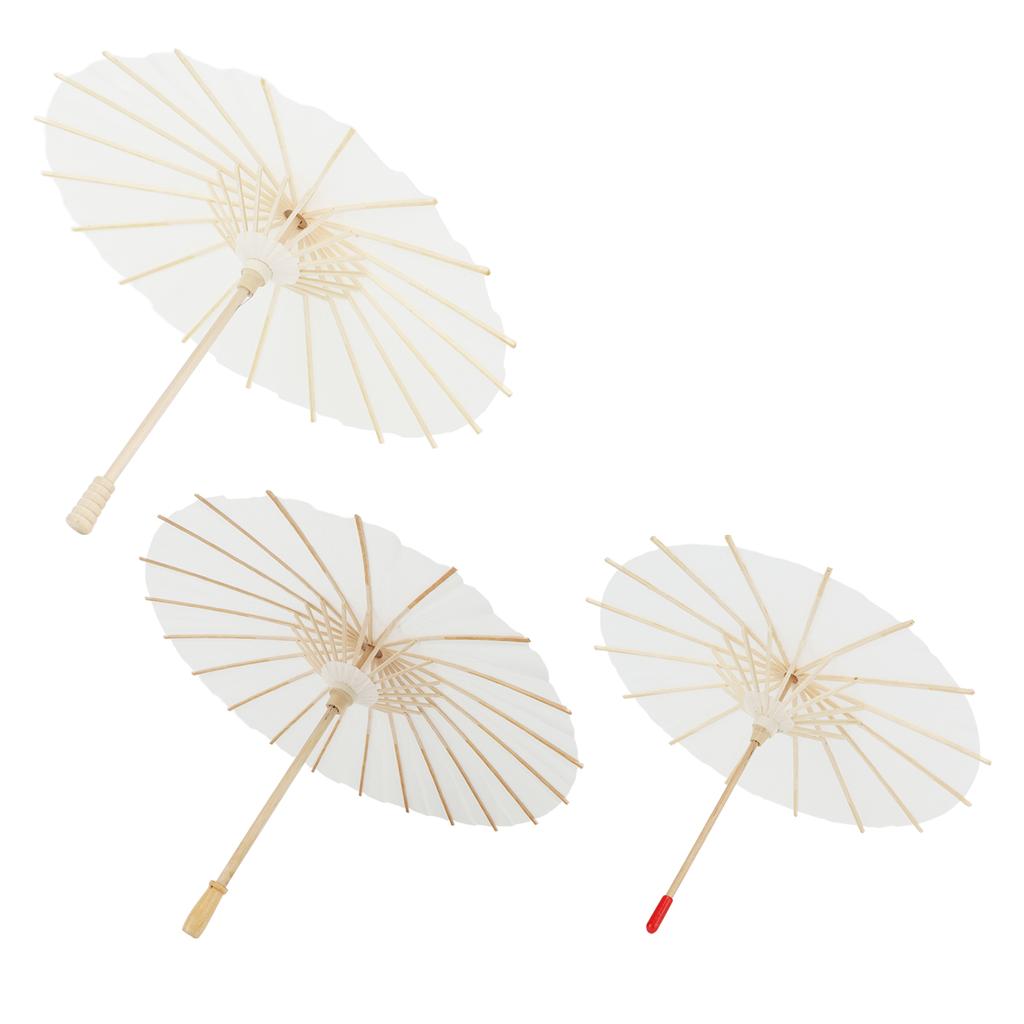 3PCS Blank Paper Umbrella 20cm 30cm 40cm DIY Hand Painted Chinese Umbrella with Log Handle for Photography Props Role