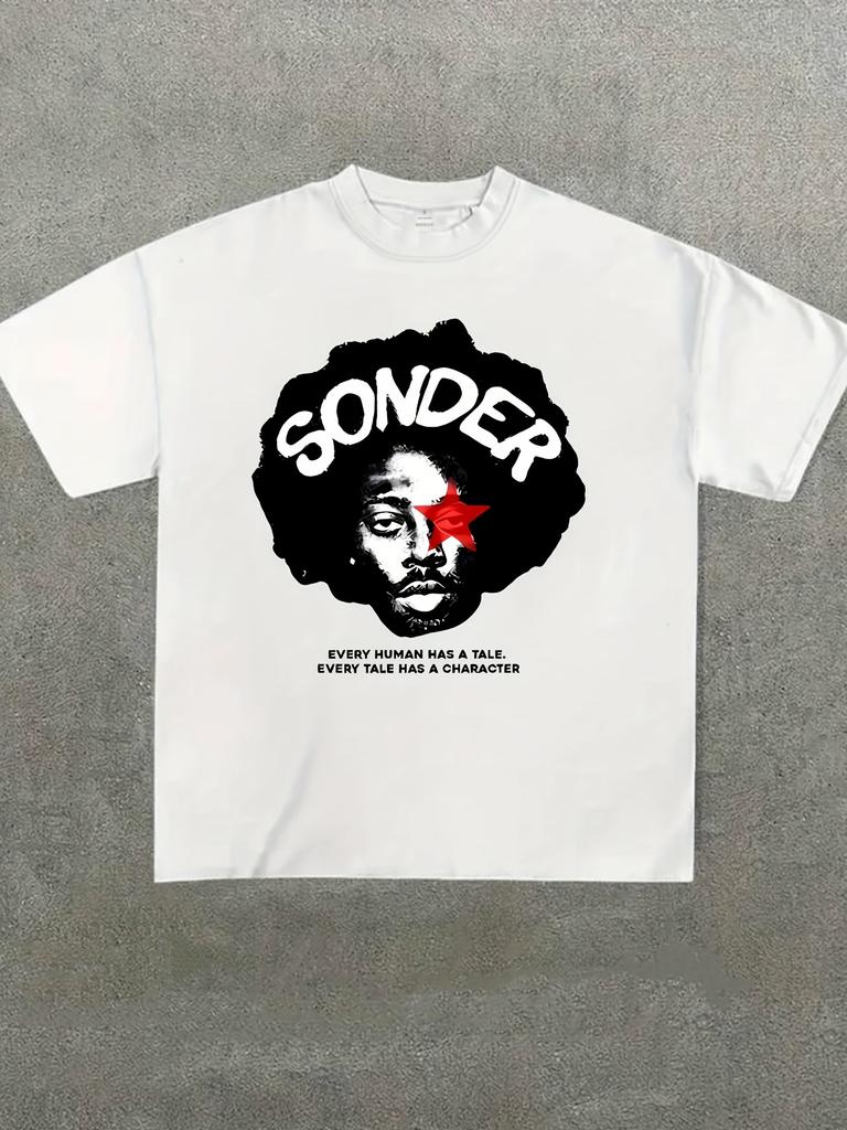 SONDER Graphic Print T-Shirt Unisex Summer Short Sleeve Tee with Bold "Every for Man Has A Character" Design Casual Loose Top