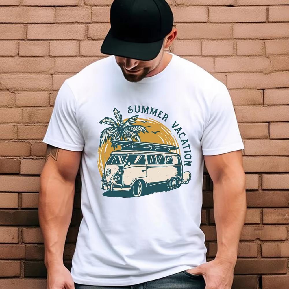 Male T Shirt Hawaii Summer Vacation Vintage Camping Bus Printed Men T-Shirt Cool Men's Tops