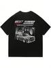 Men's Casual Crew Neck T-Shirt Soft Stretch Fabric Classic Car Print Short Sleeve Black Machine Washable Polyester Blend Retro