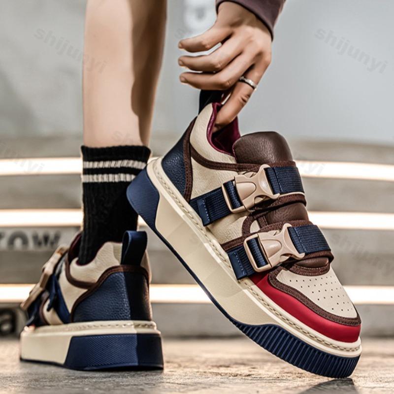 Fashion 2025 Spring New Men's Low Top Casual Shoes Thick Soled Breathable Sports Flat Shoes Fashion Trend Color Blocked Chunky sneakers