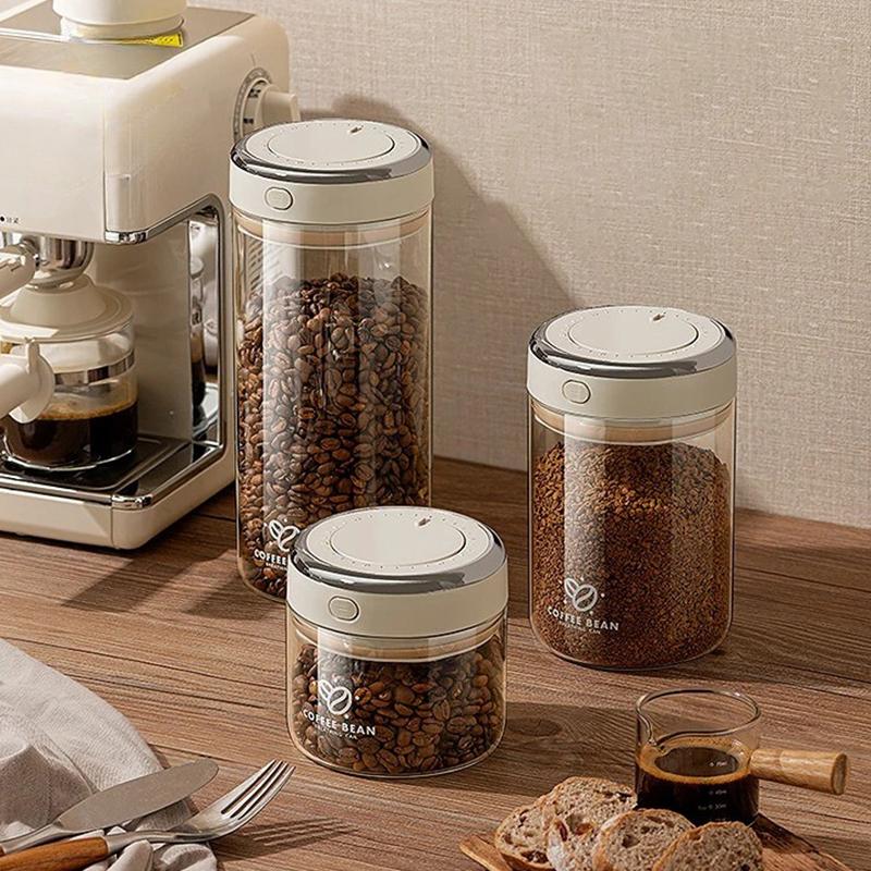 500/1100/1700 Coffee Beans Vacuum Sealed Tank Glass Food Storage Jars with Co2 Valve Household Moisture-Proof Airtight Container