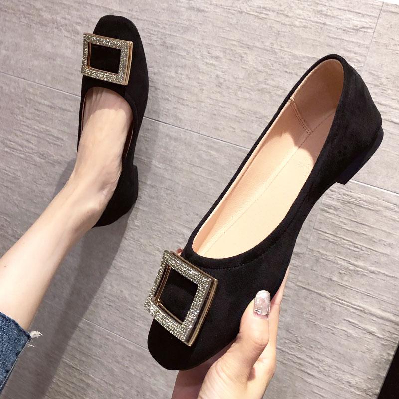 Fashion Square Toe Flat Women's Shoes Spring Autumn New Shallow Rhinestones Black Versatile Red Soft Soled Large Size Shoes for Women