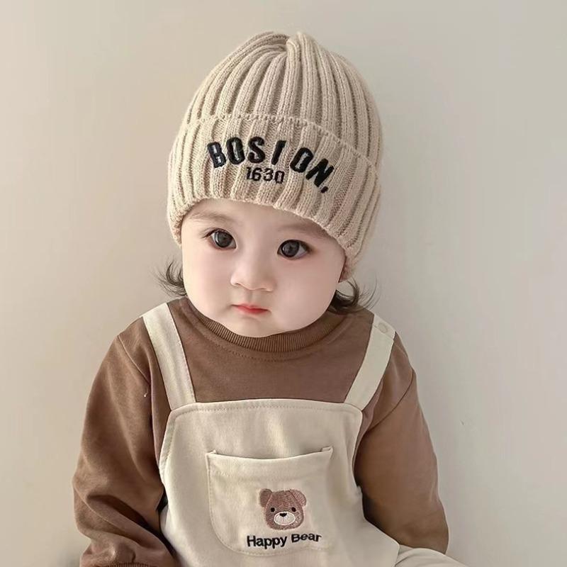 Autumn and Winter Ear Protection Wool Hat Letter Embroidery Thickened Warm Cover Baby Baby Children Knitted Hat