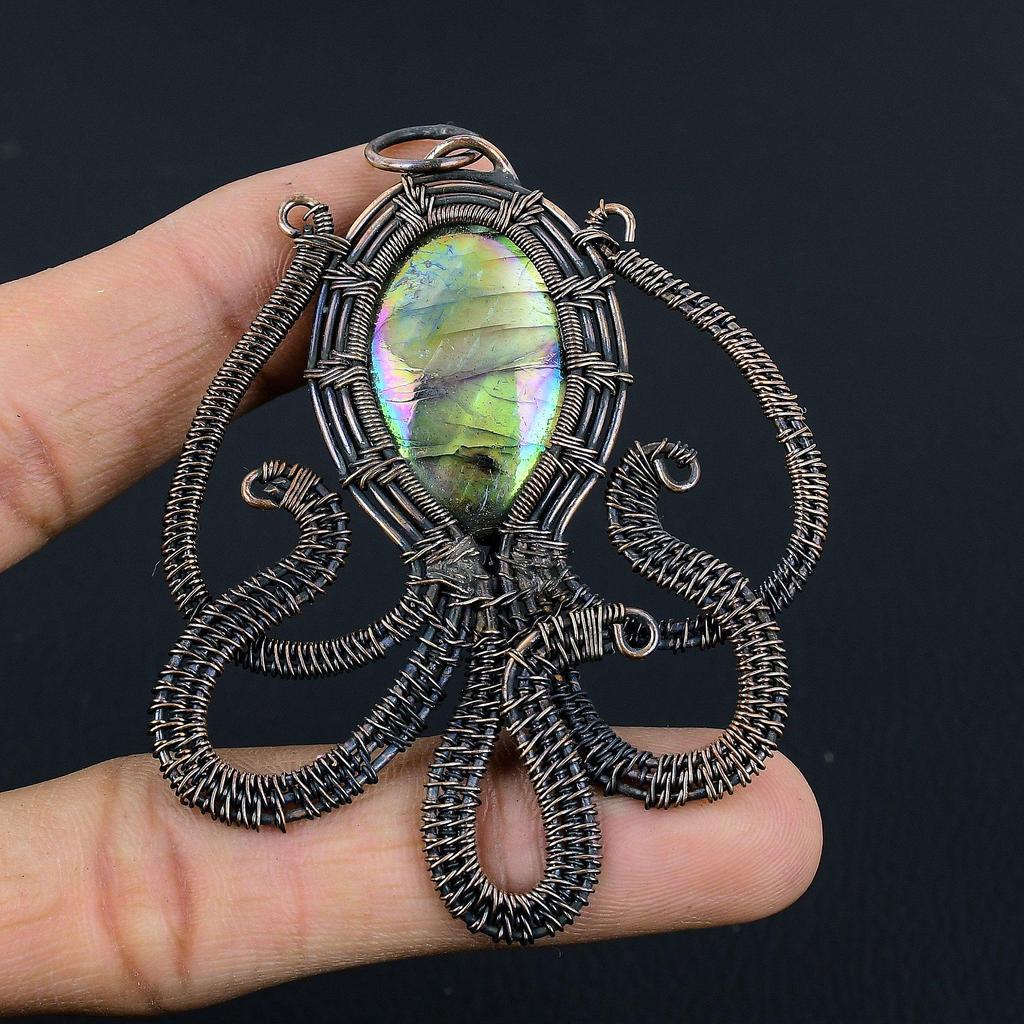 Multi Flash Labradorite Pendant, 999 Copper Wire Wrapped Jewelry, Handmade Pendant Gemstone Jewelry, Gifts For Wife Brand New Pendant