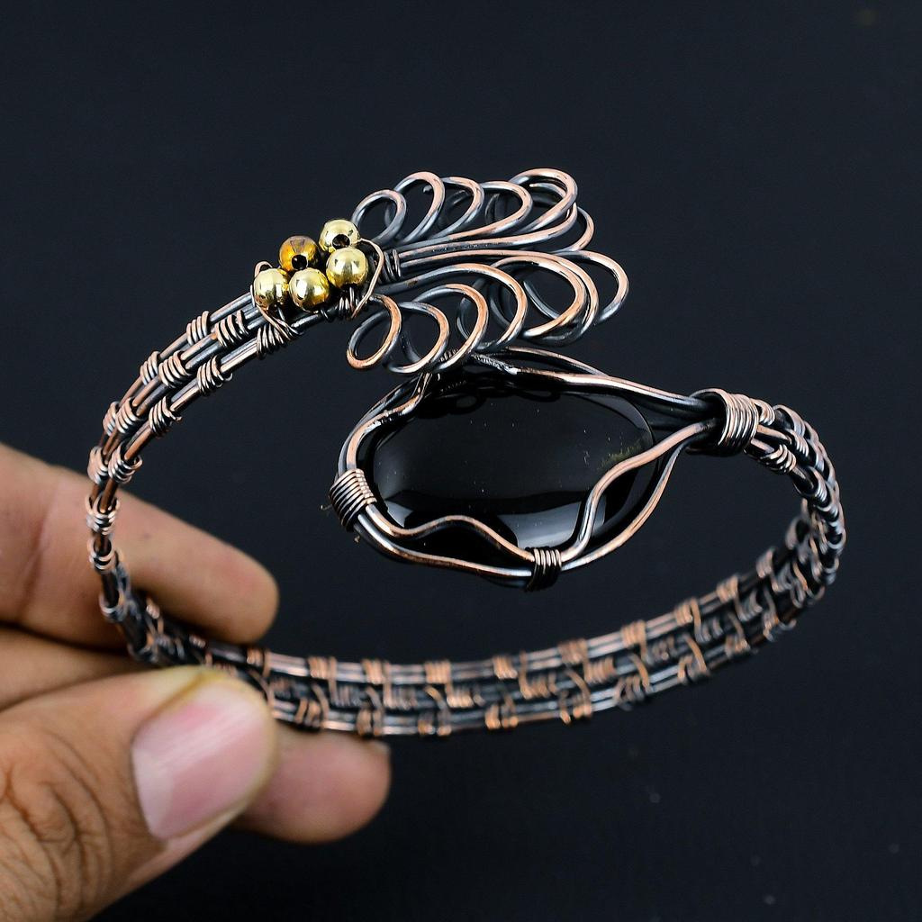 Black Onyx Bangle, 999 Copper Wire Wrapped Gemstone Jewelry, Handmade Bangle For Thanksgiving
