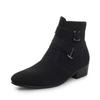 Fashion Luxury Men Boots Leather Chelsea Boots High Top Buckle Strap Formal Shoes Black British Style Ankle Boots Pointed Toe White Boot