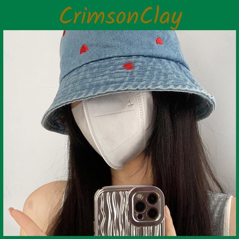 Retro Loving Heart Pattern Fisherman Hat Unisex Denim For Activities Outdoor