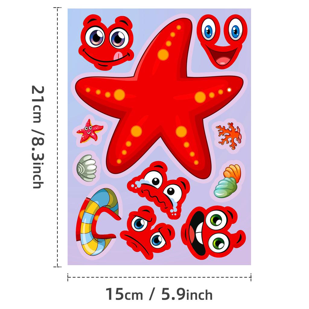 6 Photos/pack of Cute Marine Creatures Repeatable Puzzle Stickers Waterproof Stickers