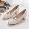 Autumn High Temperament New Mary Jane Shoes Pearl Square Head High Heels Women's Thick Heel Single Shoes