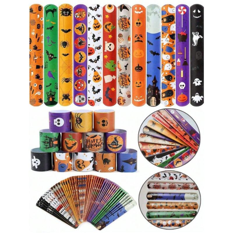 12pcs Halloween Slap Bracelets, Halloween Party Favor Snap Bracelets, Birthday Giveaways, Party Decorations, Classroom Exchanges, Prizes And Gift