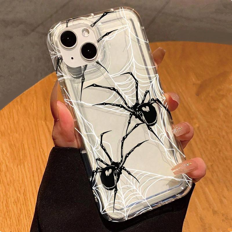 Black Spider Web Clear Case For Samsung Galaxy A15 A35 A55 A34 A54 A53 A52 S24 Ultra S23 Plus S22 S21 S20 FE Shockproof Cover