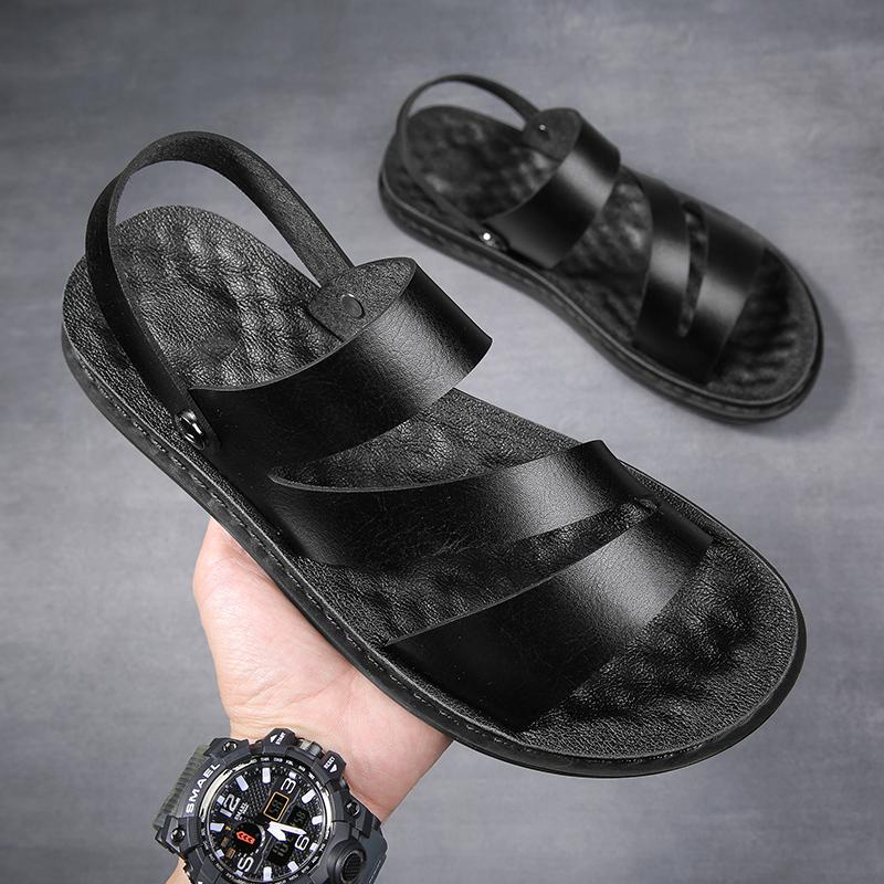 Fashion Casual Leather Summer Sandals Men Outdoor Casual Sport Slippers Non-slip Dual-Purpose Roman Shoes Beach Flip-Flop Garden Shoes