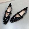 Fashion Luxury Metal Rivet Decoration Low-heeled Shoes Women Fashion Square Toe Buckle Brand Designer Shoes Elegant Comfort Office Shoes