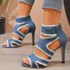 Fashion Women's Fashion Cowboy Stiletto Sandals Summer New Round Head Open Toe Bag with Back Zipper Anti-slip Wear-resistant High Heels