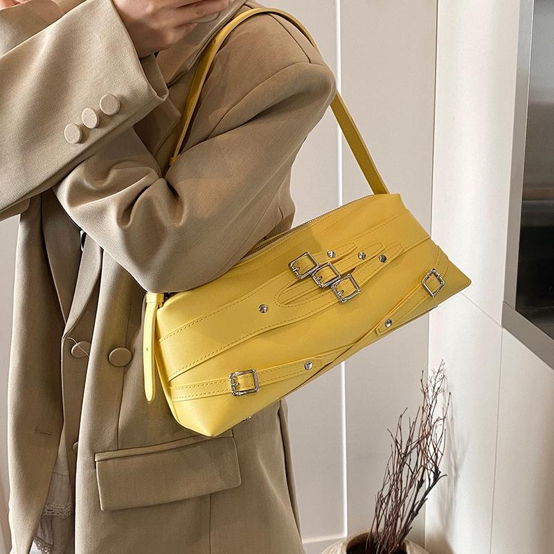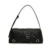 Edgy-Chic Appearance Details: This bag features a structured silhouette with unique metal hardware detailing, adding a touch of bold and modern elegance. The varied color options make it a versatile fashion piece for those who appreciate avant-garde and stylish designs.
