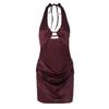 Western Style Sexy Deep V-neck Backless Hanging Neck See-through Dress Women Mesh Patchwork Hollow Satin Hip Skirt