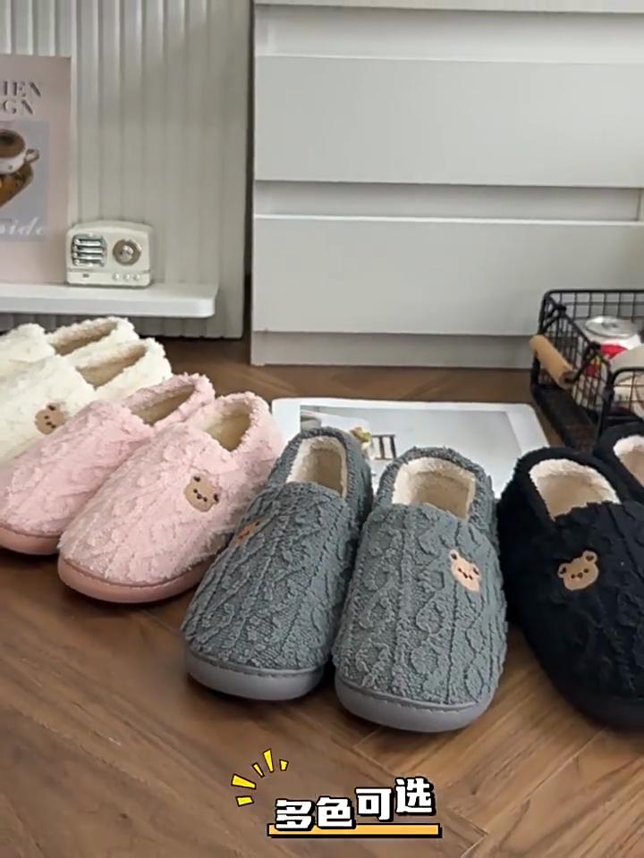 Home Cotton Slippers Women's Winter Bag with Cute Cartoon Teddy Bear Indoor Home Plush Warm Fur Slippers Men