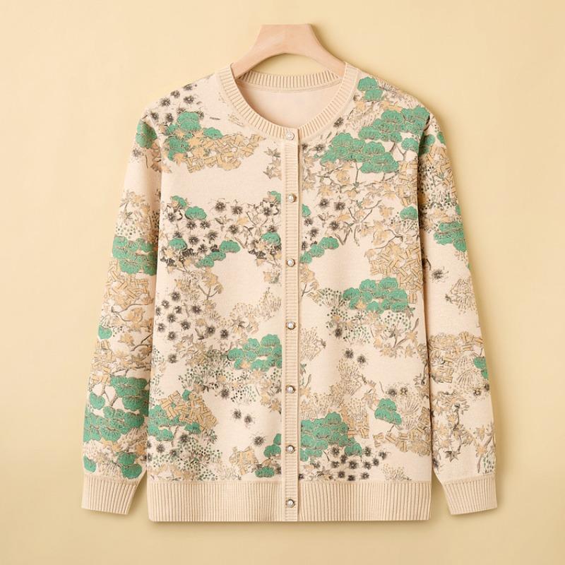 Middle-aged and Elderly Printed Tops, New Mother-0-year-old Middle-aged Women's Long-sleeved Shirts, New Spring and Autumn Clothes