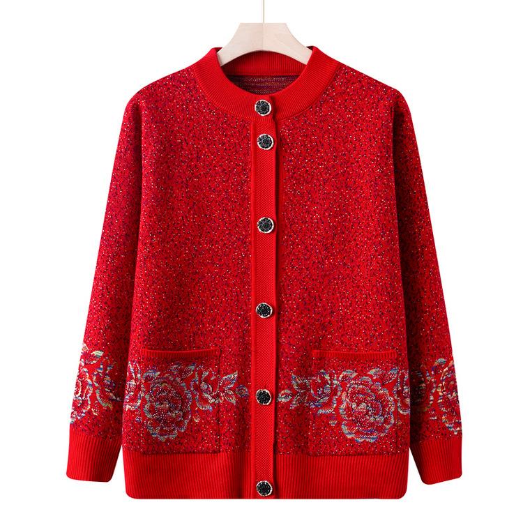 New Style Grandma Wear Autumn and Winter Sweater Knitted Sweater Cardigan Middle-aged and Elderly Mother Wear Jacket Autumn Old Lady Clothes
