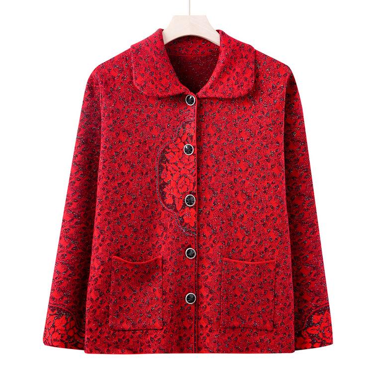 Old and Middle-aged Women's Spring and Autumn Women's Coat Mother Installed New National Style Retro Coat Grandma Autumn Sweater Cardigan