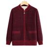 Mom's Autumn and Winter Round Neck Cardigan Plus Velvet Warm Top Middle-aged and Elderly Loose Casual and Comfortable Grandma Jacket