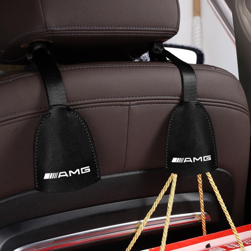 1/2pcs Leather Car Seat Back Hooks Portable Hanging Bag Rack For Mercedes Benz AMG W212 W205 W246 W177 W176 W213 GLC GLE GLS ML Welcome Laser Lamp
