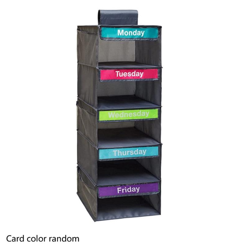 5-Shelf Weekly Clothes Organizer Kids Daily Shelf Hanging Closet Organizer Days Of The Week Hanging Storage Shelves For Kids