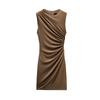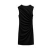 Spring New Arrival Women's Black Silm Fashion Sleeveless Round Neck Pleated Decorative Short Dress 8338250