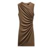 Spring New Arrival Women's Clothing Fashion Style Elegant White Ruched Silm Sleeveless Elegant Dress 8338250