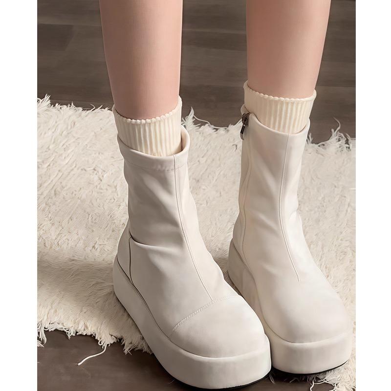 Thick-soled Martin Boots Women's New Fashionable Versatile Height-increasing and Thin Side Zipper Elastic Thin Boots