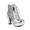 Women Ankle Boots Gold Silver Red Platform Shoes Elegant Studded Sequin Lace Up Autumn Winter Comfy Stable Chunky High Heels