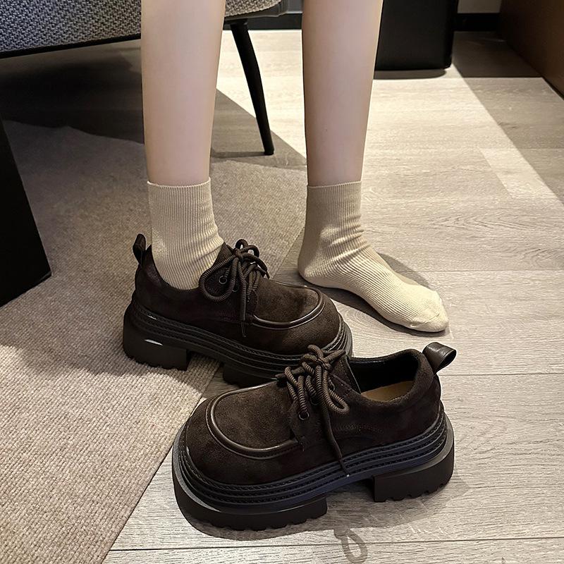 Retro Matte Loafer Small Leather Shoes Women's 2025 Spring New British Style Fashion Shorty Le Heightened Platform Shoes