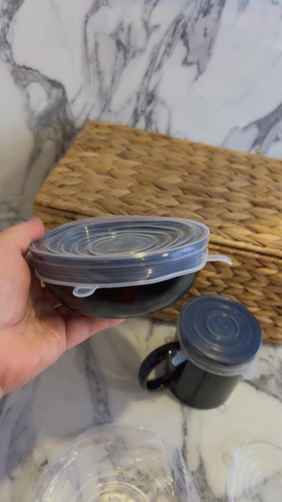 Excellent reusable silicone lids 6 pcs. Very comfortable, elastic, stretch and will fit not only a round, but also a square shape container. I recommend ๐ค