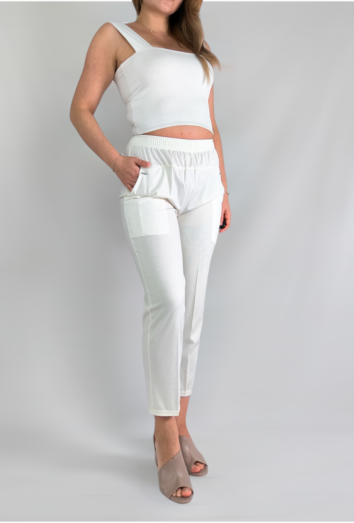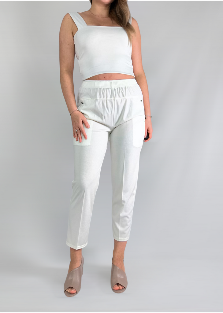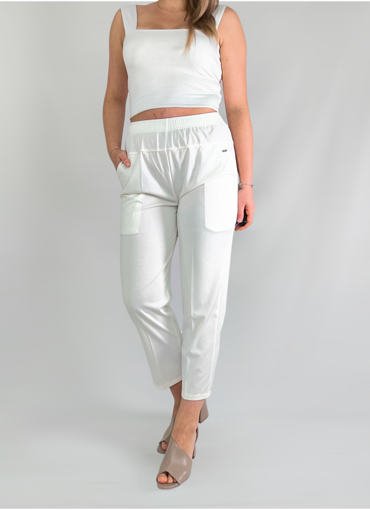 These pants are especially suitable for middle-aged and elderly women who are looking for comfort with style. They combine a classic look with everyday functionality.. *Notable advantages: - Sizes 5XLβ8XL β also suitable for a broader body type. - Straight and relaxed fit β caresses the body without clinging, flattering and comfortable. - High elastic waist β provides comfort, body shaping and light abdominal support. - Practical pockets β for everyday convenience. - Comfortable fabric with medium stretch β a blend of cotton, polyester, and spandex provides softness with flexibility. Suitable for spring, summer and autumn seasons, and for diverse use β from walking down the street to sitting at home or going out to a casual event. A comfortable, pleasant, and stylish choice for everyday wear.