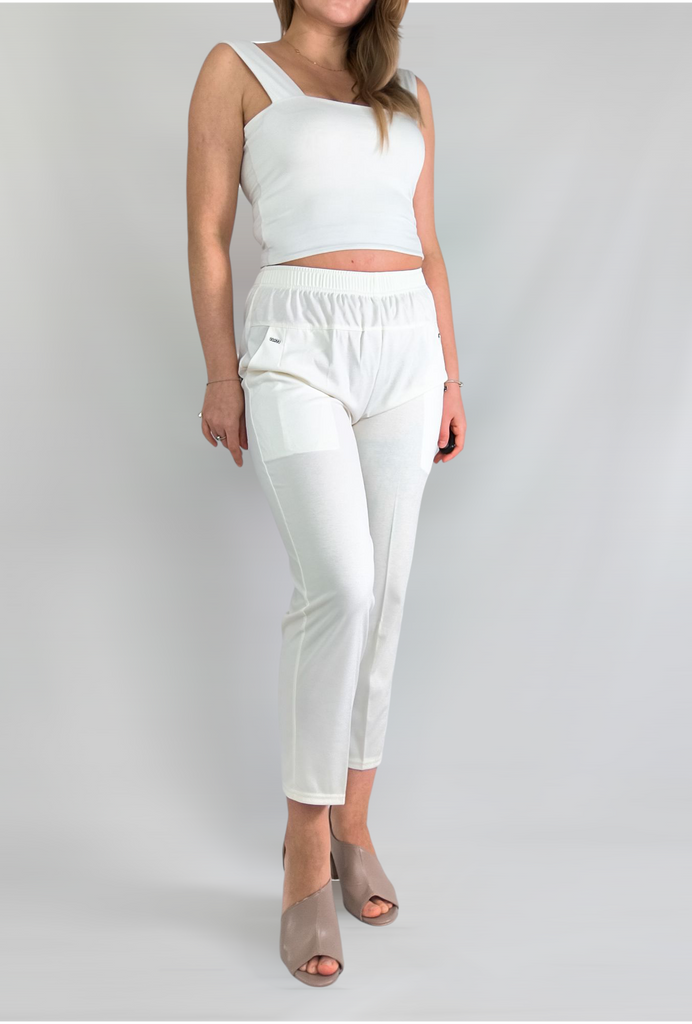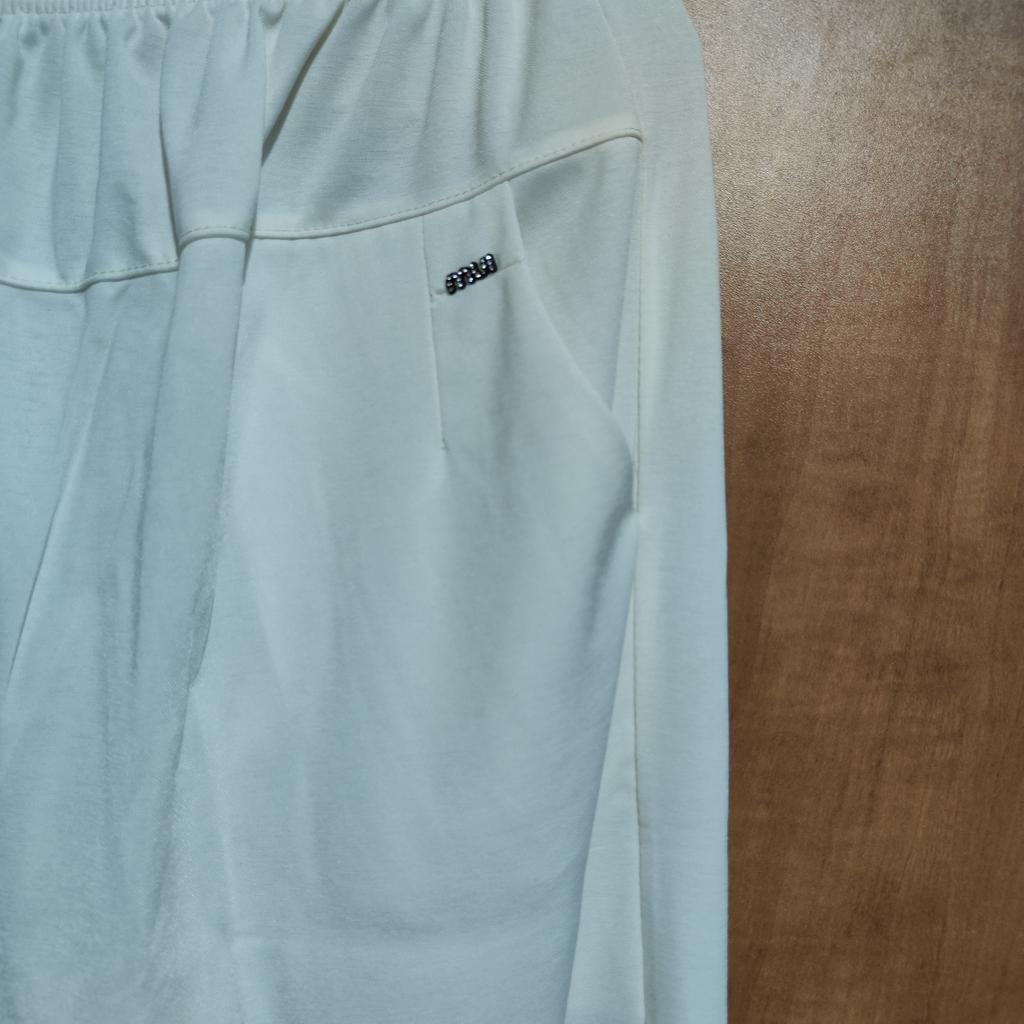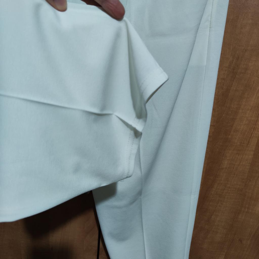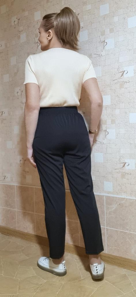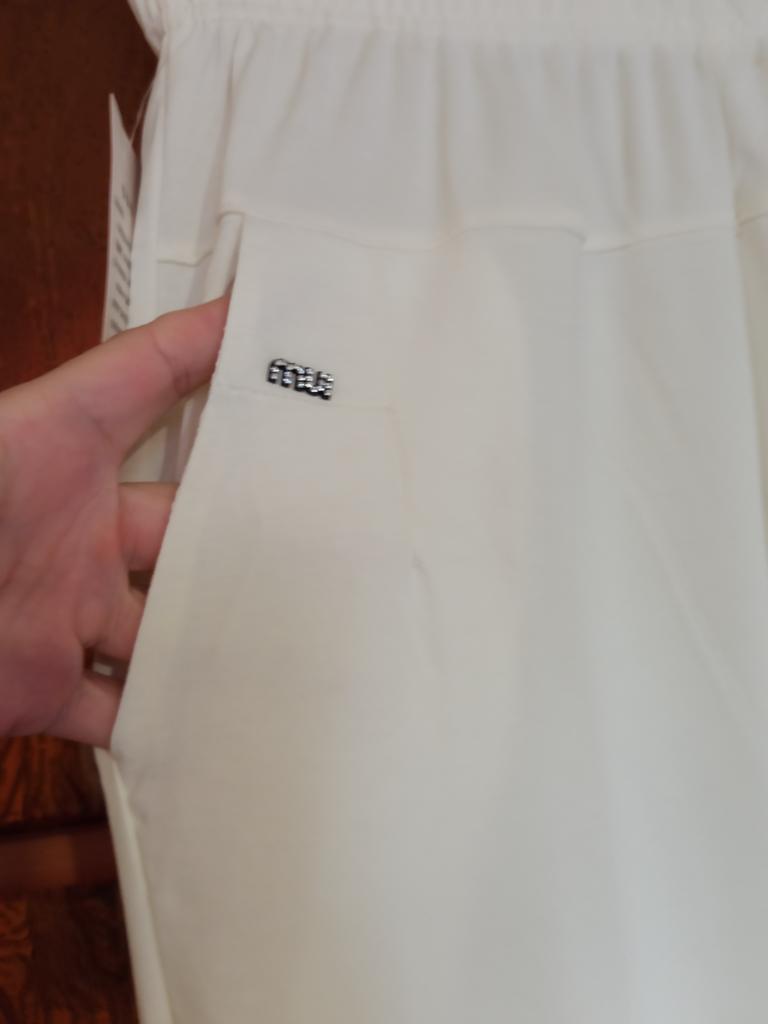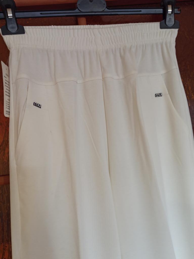 The trousers fit well, they sit perfectly, the length is just right. The only drawback is that they are not white, but ivory or champagne. Therefore, I am giving four stars, not five.