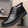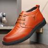 Winter Men's Dad Cotton Shoes Leather Fleece Warm Casual Leather Shoes Soft Leather Lace-up Thickened Fleece Men's Cotton Shoes