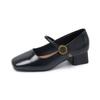 Thick Heel Square Head Mary Jane Women's Autumn New Retro One-word Strap Small Leather Shoes Medium Heel Light Mouth Single Shoes