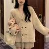 Double-breasted Imitation Mink Cardigan Sweater Women's Autumn New Thickened Lazy Loose and Comfortable Knitted Sweater Jacket