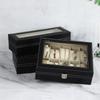 Rectangular Minimalist PU Leather 6-Slot Watch & Bracelet Storage Box with Window