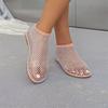 Fashion 2025 Women's New Luxury Brand Round Toe Flat Bottom Sandals Hollow Short Boots Water Diamond Sexy Flat Slippers Sandals