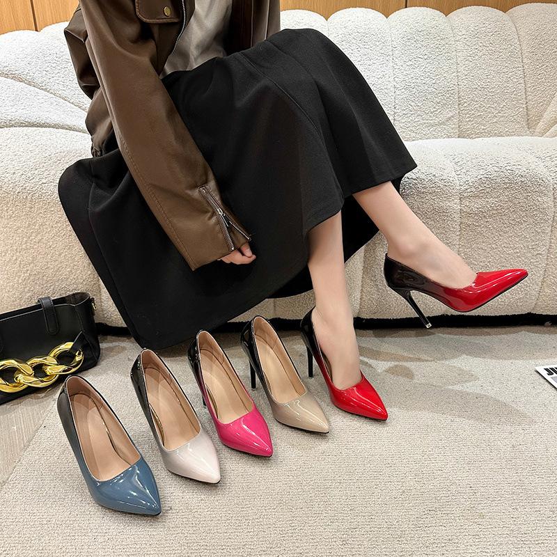 Fashion African Woman Shoe High Heels Pointed Toe 2025 Patent Leather Sexy Pump Work Dress Professional Burgundy Spikes Latest Beige Cro