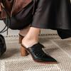 Fashion 2025 New Summer Women Mules Pointed Toe High Heel Shoes Genuine Leather Women Shoes Cover Toe Slingback Sandals Modern Slippers