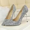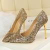 Fashion 2025 Women 9.5cm High Heels Plus Size 43 Stripper Glitter Scarpins Luxury Pumps Stiletto Wedding Bridal Gold Silver Fetish Shoes