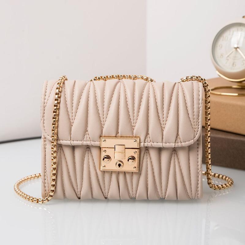 Fashion Trend Single Shoulder Women's Bag Bag, Striped Tassel Buckle Chain Crossbody Small Square Bag