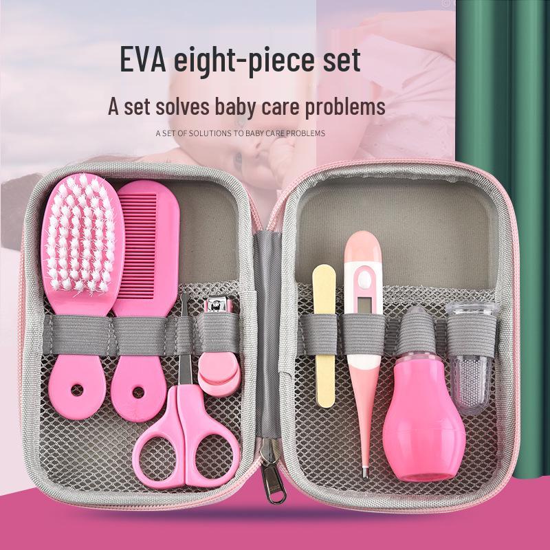 EVA Baby Care Set: 8-Piece Kit with Nasal Aspirator, Nail Clippers, and Cartoon Design